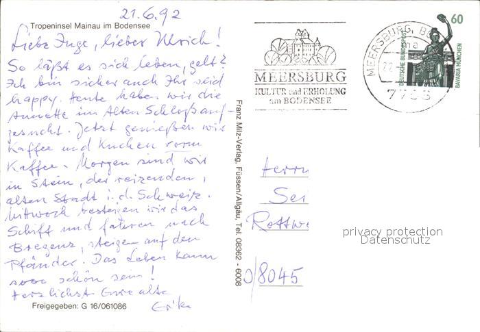 72354033 alte Postkarte Insel Mainau am Bodensee Fliegeraufnahme postalisch gelaufen Erhaltung siehe scans KatCode: 11110008335043