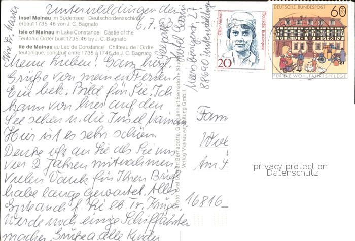 72464218 alte Postkarte Insel Mainau Deutschordensschloss postalisch gelaufen Erhaltung siehe scans KatCode: 11110008335043