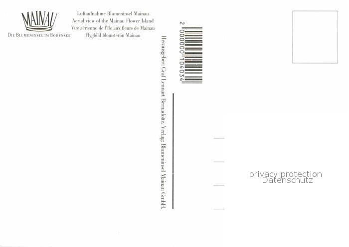72872643 Insel Mainau Fliegeraufnahme Blumeninsel postalisch nicht gelaufen Erhaltung siehe scans [LiesaD40] KatCode: 11110008335043