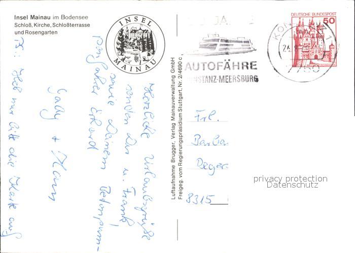 72425033 alte Postkarte Insel Mainau Fliegeraufnahme Schloss Kirche Rosengarten Bodensee postalisch gelaufen Erhaltung siehe scans KatCode: 11110008335043