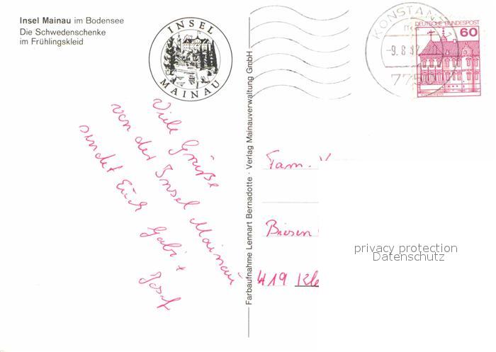 72654909 alte Postkarte Insel Mainau im Bodensee Schwedenschaenke postalisch gelaufen Erhaltung siehe scans [LiesaD40] KatCode: 11110008335043