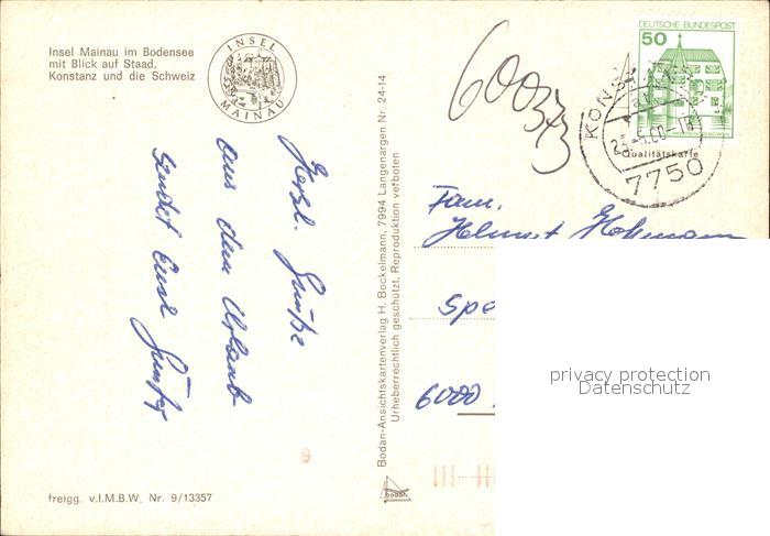 71893554 alte Postkarte Insel Mainau Kreuzberge Saentis Altmann Churfirsten Glaernisch postalisch gelaufen Erhaltung siehe scans KatCode: 11110008335043