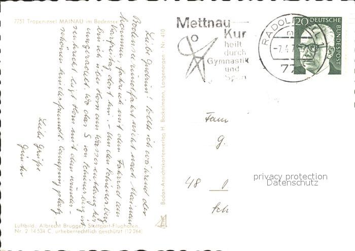 71847257 alte Postkarte Insel Mainau mit Insel Reichenau Fliegeraufnahme postalisch gelaufen KatCode: 11110008335043