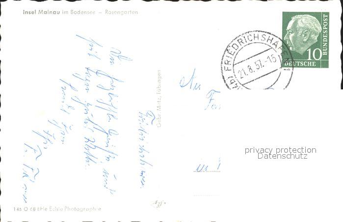 72317789 alte Postkarte Insel Mainau Rosengarten postalisch gelaufen Erhaltung siehe scans KatCode: 11110008335043