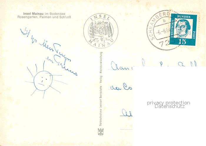 72744953 alte Postkarte Insel Mainau Rosengarten Palmen Schloss postalisch gelaufen Erhaltung siehe scans [FriedD77] KatCode: 11110008335043
