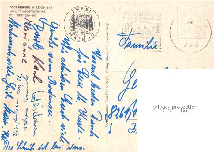 72840681 alte Postkarte Insel Mainau Schwedenschenke im Fruehlingskleid Blumen postalisch gelaufen Erhaltung siehe scans [FriedD77] KatCode: 11110008335043