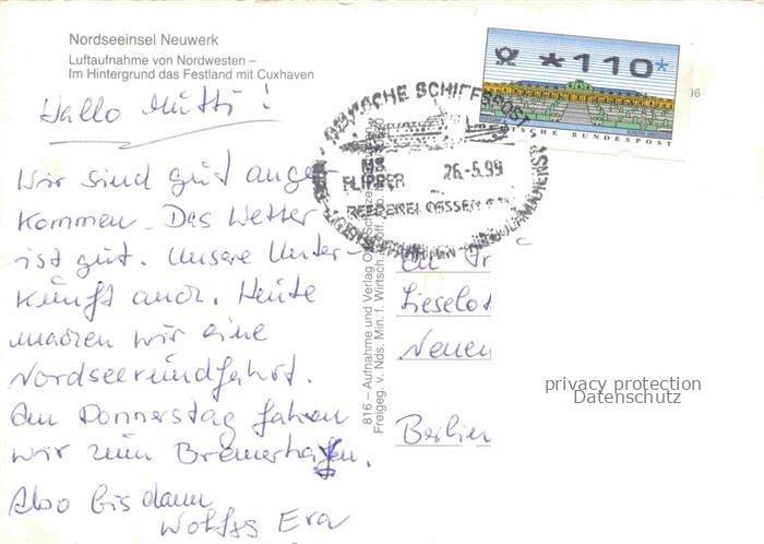 74044108 alte Postkarte Insel Neuwerk Cuxhaven Nordseebad Fliegeraufnahme mit Festland und Cuxhaven postalisch gelaufen Erhaltung siehe scans [WerneD78] KatCode: 11110003352011