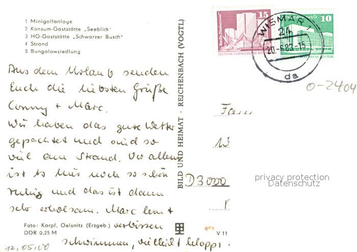 73050584 alte Postkarte Insel Poel Gaststaette Schwarzer Busch Minigolfanlage Bungalowsiedlung postalisch gelaufen Erhaltung siehe scans [PaolaD17] KatCode: 11110013058050