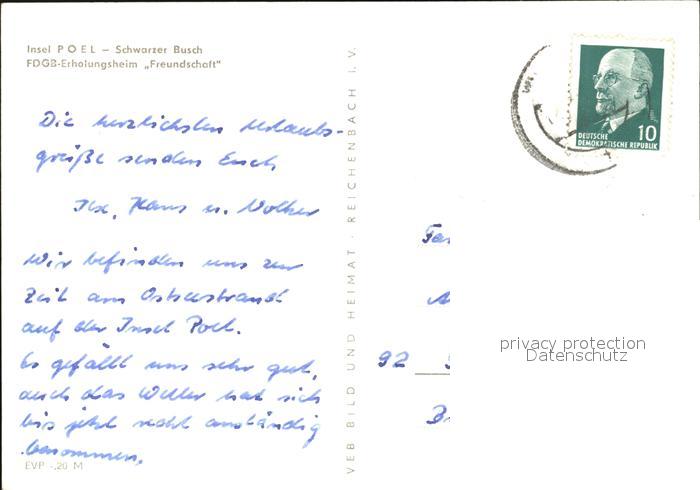 72478224 alte Postkarte Insel Poel Schwarzer Busch FDGB Erholungsheim Freundschaft postalisch gelaufen Erhaltung siehe scans KatCode: 11110013058050