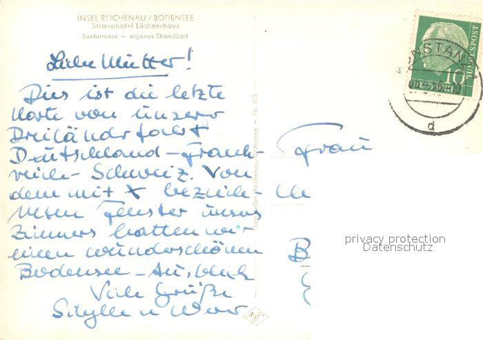 73726131 alte Postkarte Insel Reichenau Bodensee Strandhotel Loechnerhaus Aussenansicht postalisch gelaufen Erhaltung siehe scans [LiesaD40] KatCode: 11110008335066