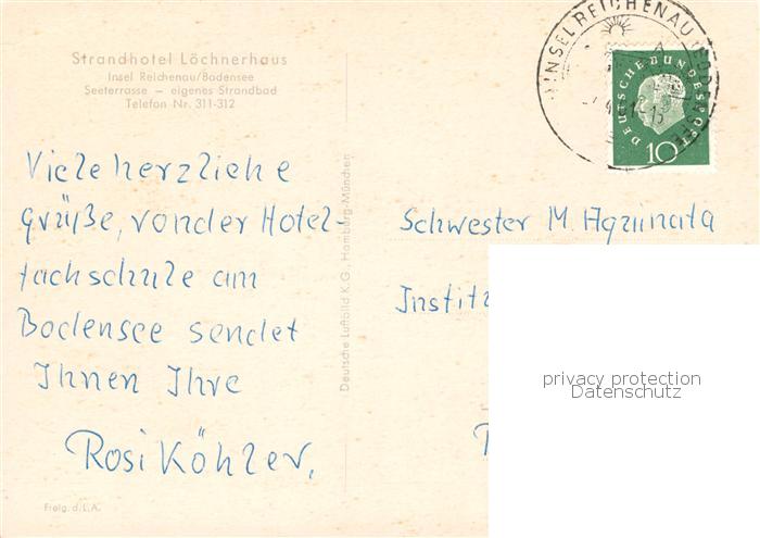 73852013 Insel Reichenau Bodensee Strandhotel Loechnerhaus Fliegeraufnahme postalisch gelaufen Erhaltung siehe scans [WerneD78] alte Postkarte Wern Katcode 11110008335066