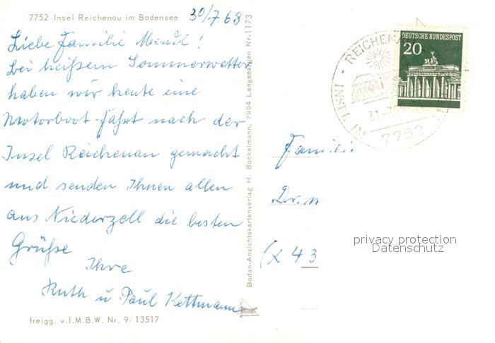 73205788 alte Postkarte Insel Reichenau Fliegeraufnahme postalisch gelaufen Erhaltung siehe scans [PaolaD17] KatCode: 11110008335066