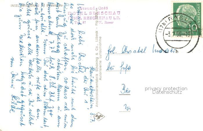 73647035 alte Postkarte Insel Reichenau Fliegeraufnahme postalisch gelaufen Erhaltung siehe scans [FriedD77] KatCode: 11110008335066