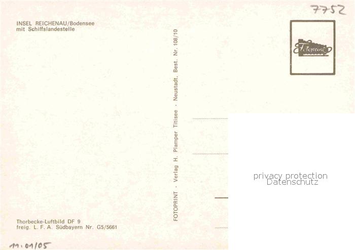 72912208 Insel Reichenau Fliegeraufnahme mit Schiffsanlegestelle postalisch nicht gelaufen Erhaltung siehe scans [LiesaD40] KatCode: 11110008335066