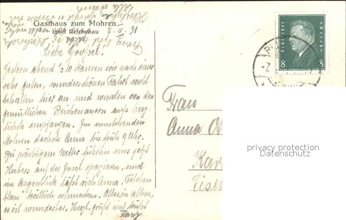 31849755 alte Postkarte Insel Reichenau Gasthaus Pension zum Mohren postalisch gelaufen Erhaltung siehe scans KatCode: 11110008335066