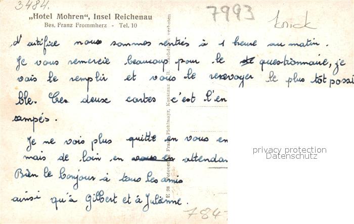 43057768 Insel Reichenau Hotel Mohren postalisch nicht gelaufen Erhaltung siehe scans [KathaD81] KatCode: 11110008335066
