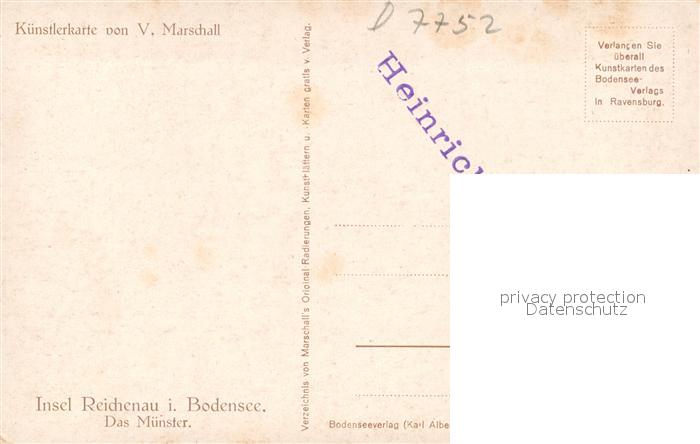 43348509 Insel Reichenau Muenster Kuenstlerkarte Marschall postalisch nicht gelaufen Erhaltung siehe scans [KathaD81] KatCode: 11110008335066
