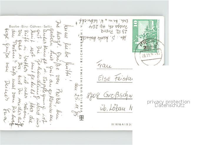 71945790 alte Postkarte Insel Ruegen Baabe Binz Goehren Sellin postalisch gelaufen Erhaltung siehe scans KatCode: 11110013061004