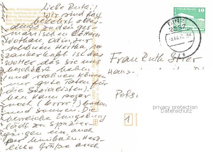 72667538 alte Postkarte Insel Ruegen Baabe Binz GoehrenBinz Sellin postalisch gelaufen Erhaltung siehe scans [AndreD76] KatCode: 11110013061004