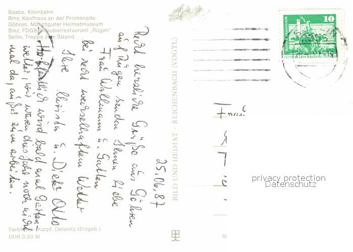 72848973 alte Postkarte Insel Ruegen Baeder der Insel Baabe Kleinbahn Dampflokomotive Binz Kaufhaus Urlauberrestaurant Goehren Museum Sellin Treppe zum Strand postalisch gelaufen Erhaltung siehe scans [FriedD77] KatCode: 11110013061004