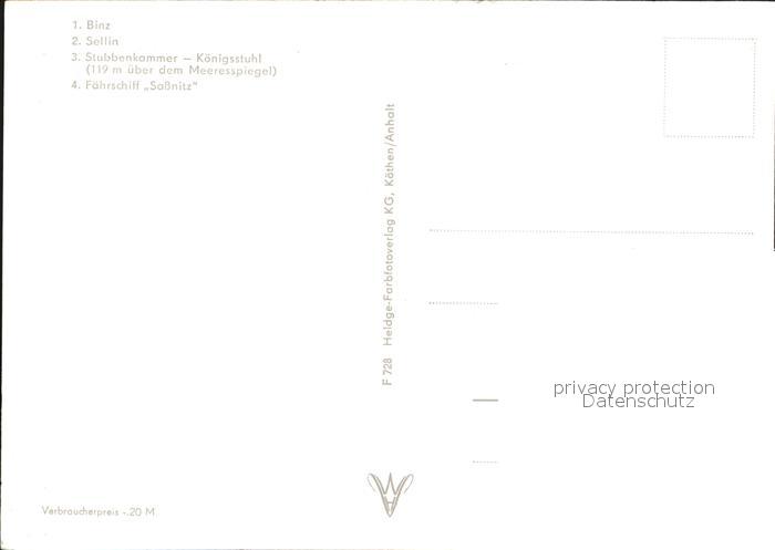 72552579 Insel Ruegen Binz Sellin Stubbenkammer Koenigsstuhl Faehrschiff Sassnitz postalisch nicht gelaufen Erhaltung siehe scans [WerneD78] KatCode: 11110013061004