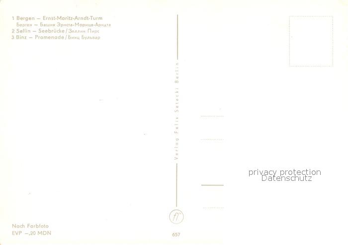72945823 Insel Ruegen Ernst Moritz Arndt Turm Bergen Seebruecke Sellin Promenade Binz postalisch nicht gelaufen Erhaltung siehe scans [WerneD78] KatCode: 11110013061004