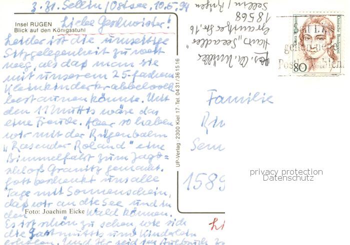 73755836 alte Postkarte Insel Ruegen Fliegeraufnahme mit Koenigsstuhl postalisch gelaufen Erhaltung siehe scans [FriedD77] KatCode: 11110013061004