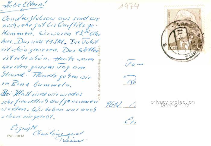 72899600 alte Postkarte Insel Ruegen Goehren Baabe Binz postalisch gelaufen Erhaltung siehe scans [PaolaD17] KatCode: 11110013061004