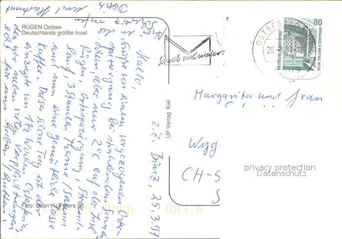 72590395 alte Postkarte Insel Ruegen Hafen Steilkueste Kreidefelsen postalisch gelaufen Erhaltung siehe scans [LiesaD40] KatCode: 11110013061004