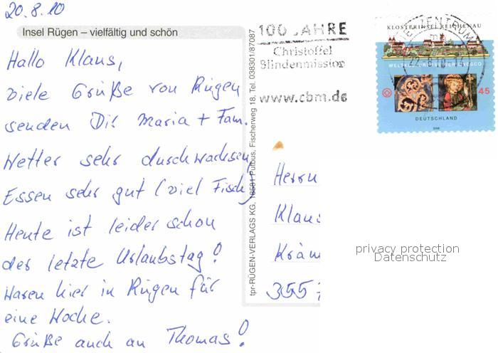 72868486 alte Postkarte Insel Ruegen Jagdschloss Granitz Cirus Cottbus Wissower Klinken Kap Arkona Binz Kreidefelsen Seebruecke Sellin Sassnitz Alleen Pfarrwitwenhaus Rasender Roland postalisch gelaufen Erhaltung siehe scans [WerneD78] KatCode: 11110013061004