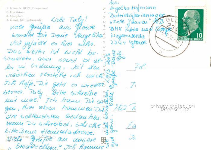 72616280 alte Postkarte Insel Ruegen Juliusruh Kap Arkona Koenigstuhl Kreidefelsen Glowe postalisch gelaufen Erhaltung siehe scans [FriedD77] KatCode: 11110013061004