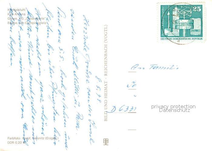 73145284 alte Postkarte Insel Ruegen Koenigsstuhl Kap Arkona Gowe KG Ostseeperle Barbe am Campingplatz postalisch gelaufen Erhaltung siehe scans [WerneD78] KatCode: 11110013061004