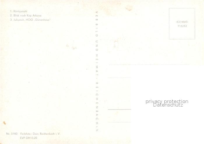 72958828 Insel Ruegen Koenigsstuhl Kreidefelsen Kap Arkona Juliusruh HOG Duenenhaus postalisch nicht gelaufen Erhaltung siehe scans [FriedD77] KatCode: 11110013061004