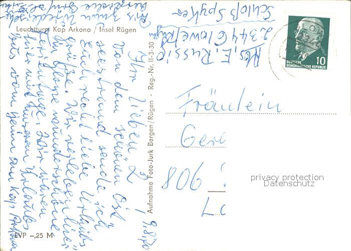 71997147 alte Postkarte Insel Ruegen Leuchtturm Kap Akona postalisch gelaufen Erhaltung siehe scans KatCode: 11110013061004