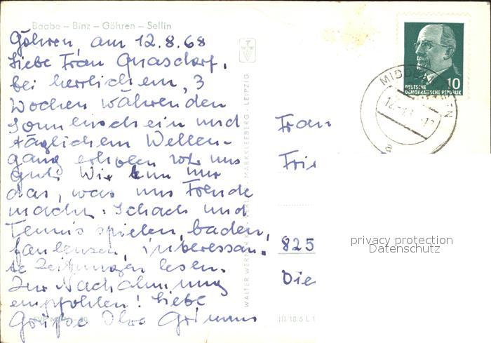 72473938 alte Postkarte Insel Ruegen mit Baabe Binz Goehren Sellin postalisch gelaufen Erhaltung siehe scans KatCode: 11110013061004
