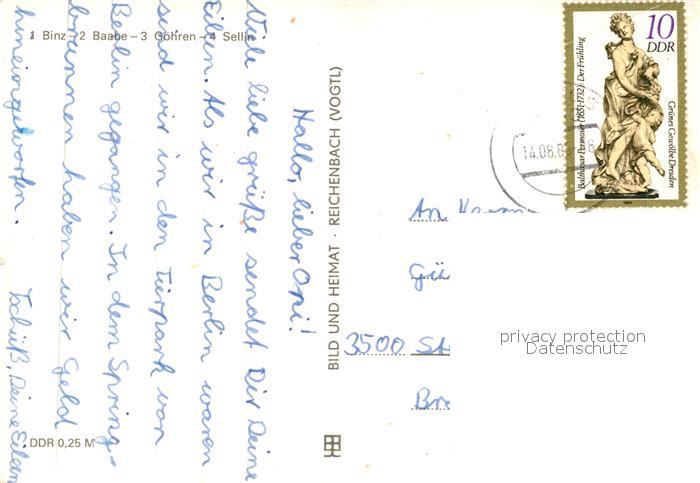 73044895 alte Postkarte Insel Ruegen mit Binz Baabe Goehren Sellin postalisch gelaufen Erhaltung siehe scans [WerneD78] KatCode: 11110013061004