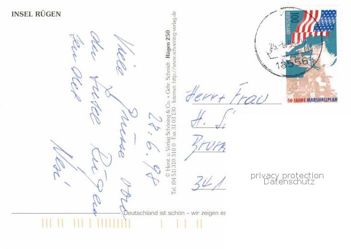 72720518 alte Postkarte Insel Ruegen Rasende Roland Kreidefelsen Kap Arkona Reetdachhaus postalisch gelaufen Erhaltung siehe scans [KathaD79] KatCode: 11110013061004