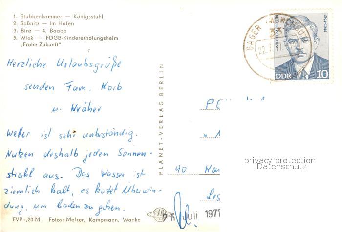 73037983 alte Postkarte Insel Ruegen Stubbenkammer Koenigsstuhl Sassnitz Hafen Binz Baabe Wiek postalisch gelaufen Erhaltung siehe scans [KathaD81] KatCode: 11110013061004