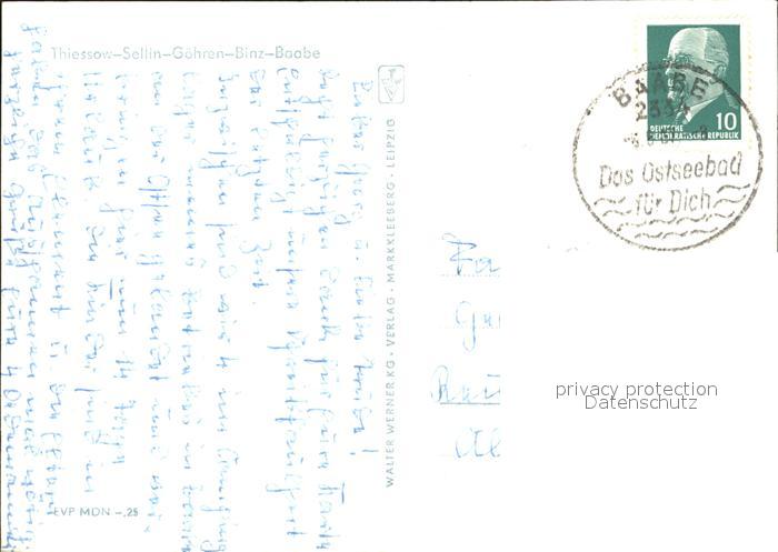 72341004 alte Postkarte Insel Ruegen Thiessow Sellin Goehren Binz Baabe postalisch gelaufen Erhaltung siehe scans KatCode: 11110013061004