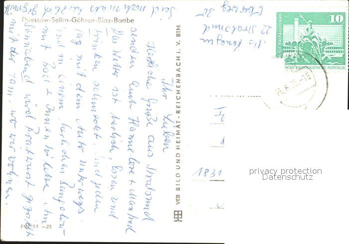 72328248 alte Postkarte Insel Ruegen Thiessow Sellin Goehren Binz Baabe Strand Seebruecke Pavillon postalisch gelaufen Erhaltung siehe scans KatCode: 11110013061004