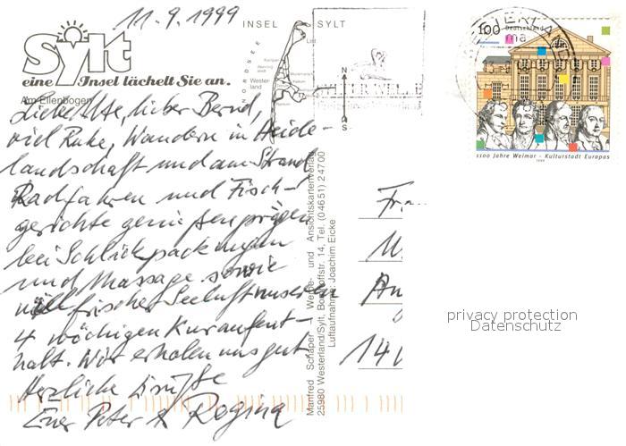 73209351 alte Postkarte Insel Sylt Am Ellenbogen Fliegeraufnahme postalisch gelaufen Erhaltung siehe scans [FriedD77] KatCode: 11110001054151
