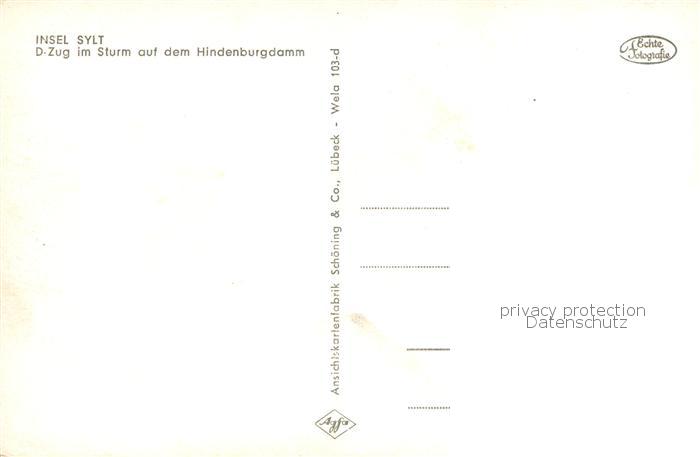 73767908 Insel Sylt D Zug im Sturm auf dem Hindenburgdamm postalisch nicht gelaufen Erhaltung siehe scans [WerneD78] KatCode: 11110001054151