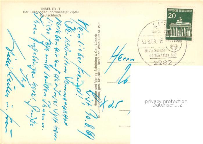 73716216 alte Postkarte Insel Sylt Ellenbogen noerdlichster Zipfel der Insel postalisch gelaufen Fliegeraufnahme Erhaltung siehe scans [FriedD77] KatCode: 11110001054151