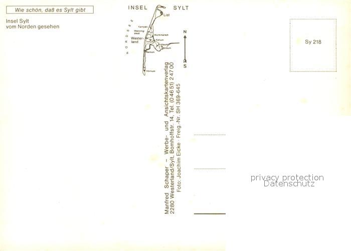 73649345 Insel Sylt Fliegeraufnahme postalisch nicht gelaufen Erhaltung siehe scans [WerneD78] KatCode: 11110001054151