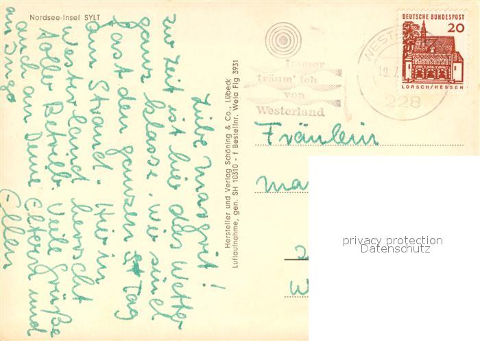 73037892 alte Postkarte Insel Sylt Fliegeraufnahme postalisch gelaufen Erhaltung siehe scans [KathaD81] KatCode: 11110001054151