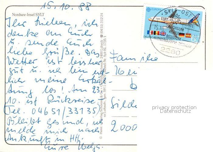 72962812 alte Postkarte Insel Sylt Fliegeraufnahme postalisch gelaufen Erhaltung siehe scans [WerneD78] KatCode: 11110001054151