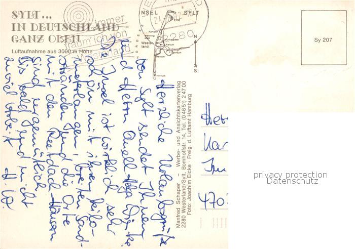 72946792 alte Postkarte Insel Sylt Fliegeraufnahme postalisch gelaufen Erhaltung siehe scans [KathaD81] KatCode: 11110001054151