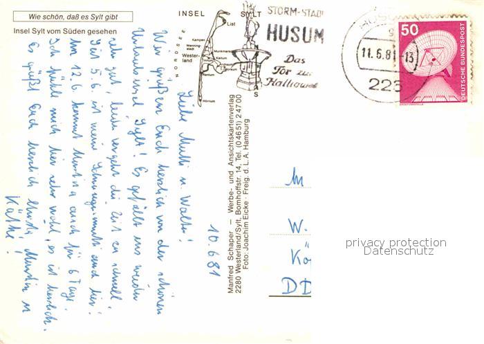 72917199 alte Postkarte Insel Sylt Fliegeraufnahme postalisch gelaufen Erhaltung siehe scans [KathaD81] KatCode: 11110001054151