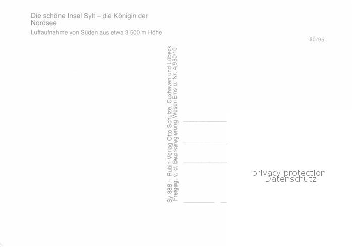72840876 Insel Sylt Fliegeraufnahme postalisch nicht gelaufen Erhaltung siehe scans [PaolaD17] KatCode: 11110001054151