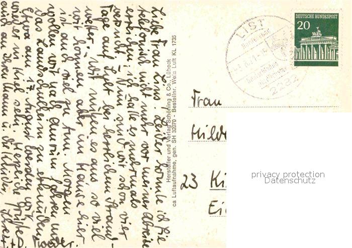 72756536 alte Postkarte Insel Sylt Fliegeraufnahme postalisch gelaufen Erhaltung siehe scans [WerneD78] KatCode: 11110001054151